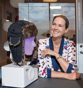 - Vi snakker ikke om kameraovervåkning, men teknologi som ikke forstyrrer pasientene. Tvert imot oppleves overvåkningen som økt trygghet og mer frihet. Det kan være en fallsensor, som passer på at ikke en dement mann faller og blir liggende i hjemmet sitt. Sensoren sier fra når den merker et fall. Så gir systemet beskjed om en helsearbeider må følge opp. Fremover kommer stadig flere sensorer og systemer som kobles til mobil-nettet. Sensorene på kroppen vi snakket om tidligere kan kombineres med en sensor i toalettet som sjekker urinen – har pasienten riktige nivåer av medisiner i kroppen? Pasienten opplever større frihet enn om man måtte bo på institusjon og bli passet på døgnet rundt, forklarer hun.