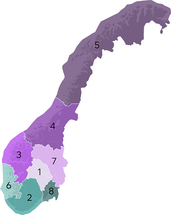 Oslo, Drammensområdet, Vestfold, Østfold og resten av Akershus.