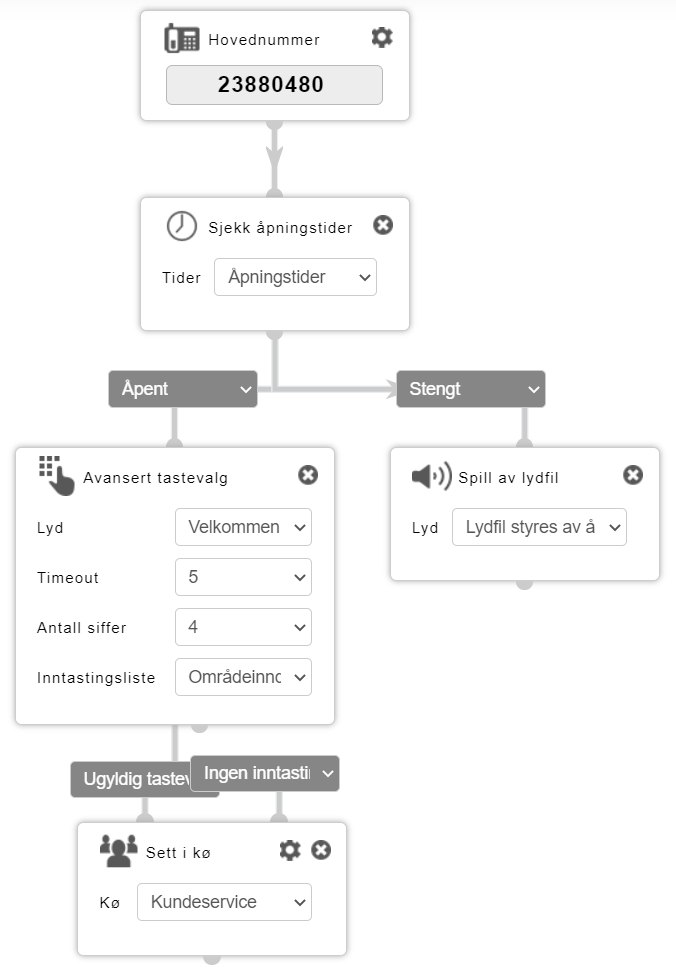 - Lydfil som informerer innringer om hva de skal taste inn. Lydfiler opprettes under Lydfiler i menyen på høyre side.