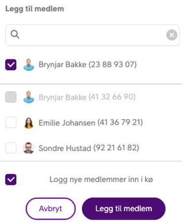 - Kryss av Logg inn nye medlemmer i kø hvis du ønsker at de skal logges inn direkte.