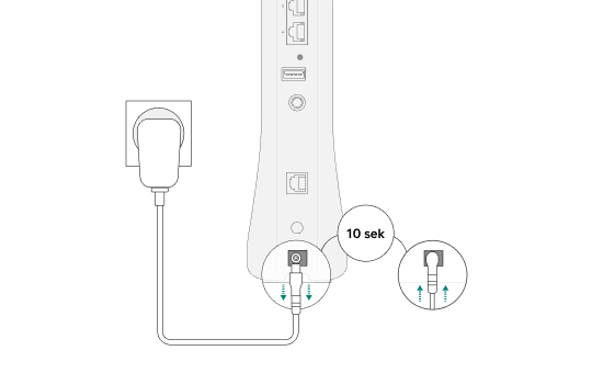 - Koble til strømmen igjen. NB! Det kan ta noen minutter før ruteren kobler seg til internett igjen.