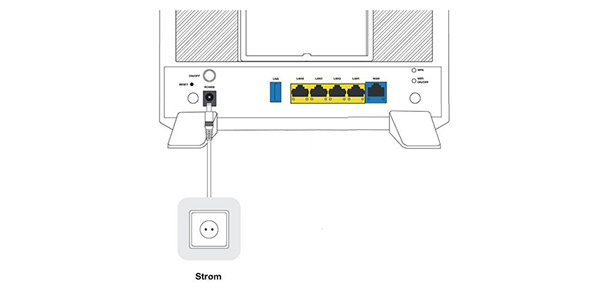 Koble ruteren med strømkabelen til et strømuttak. Pass på at alle kabler sitter godt.