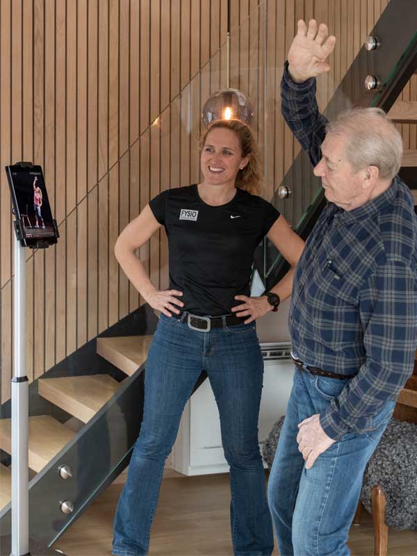 En fysioterapeut gjør en funksjonstest av brukeren og kartlegger potensial og ønsket treningsmengde. Så programmerer man timeplanen, som da dukker opp på et nettbrett hjemme hos brukeren. Det eneste man må sørge for er at brukeren har strøm på nettbrettet sitt.