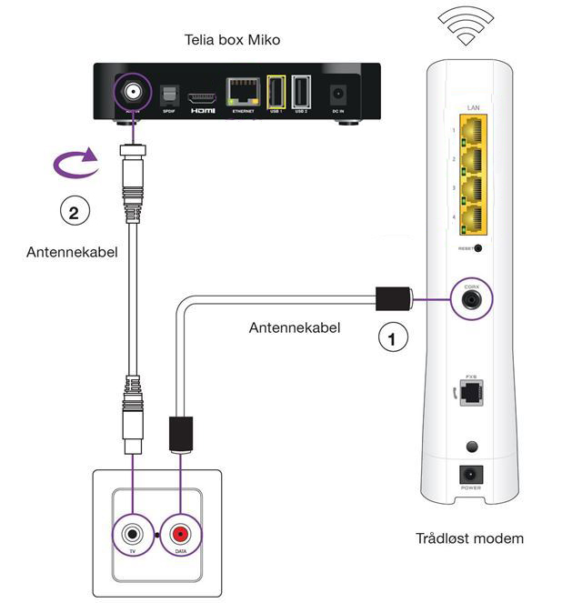 Slik kobler du opp TV-boks Mikro sammen med modemet ditt: